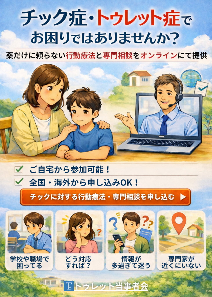 ※チック症状に対する行動療法(CBIT/ハビットリバーサル・ERP・呼吸法)をご希望の方は、下記リンクをご覧頂き、必要事項をご記乳の上お申し込みください。