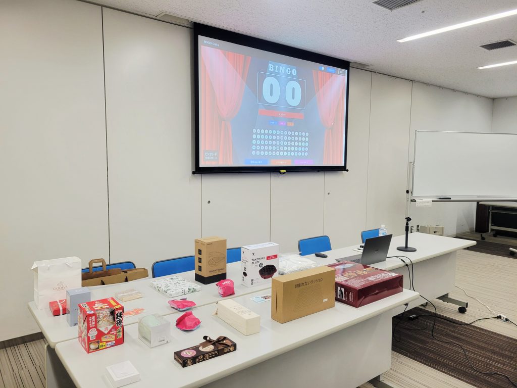その後は、恒例のビンゴ大会。会場前方にはたくさんの景品が並び、大人も子どもも一緒になって大盛り上がりでした。